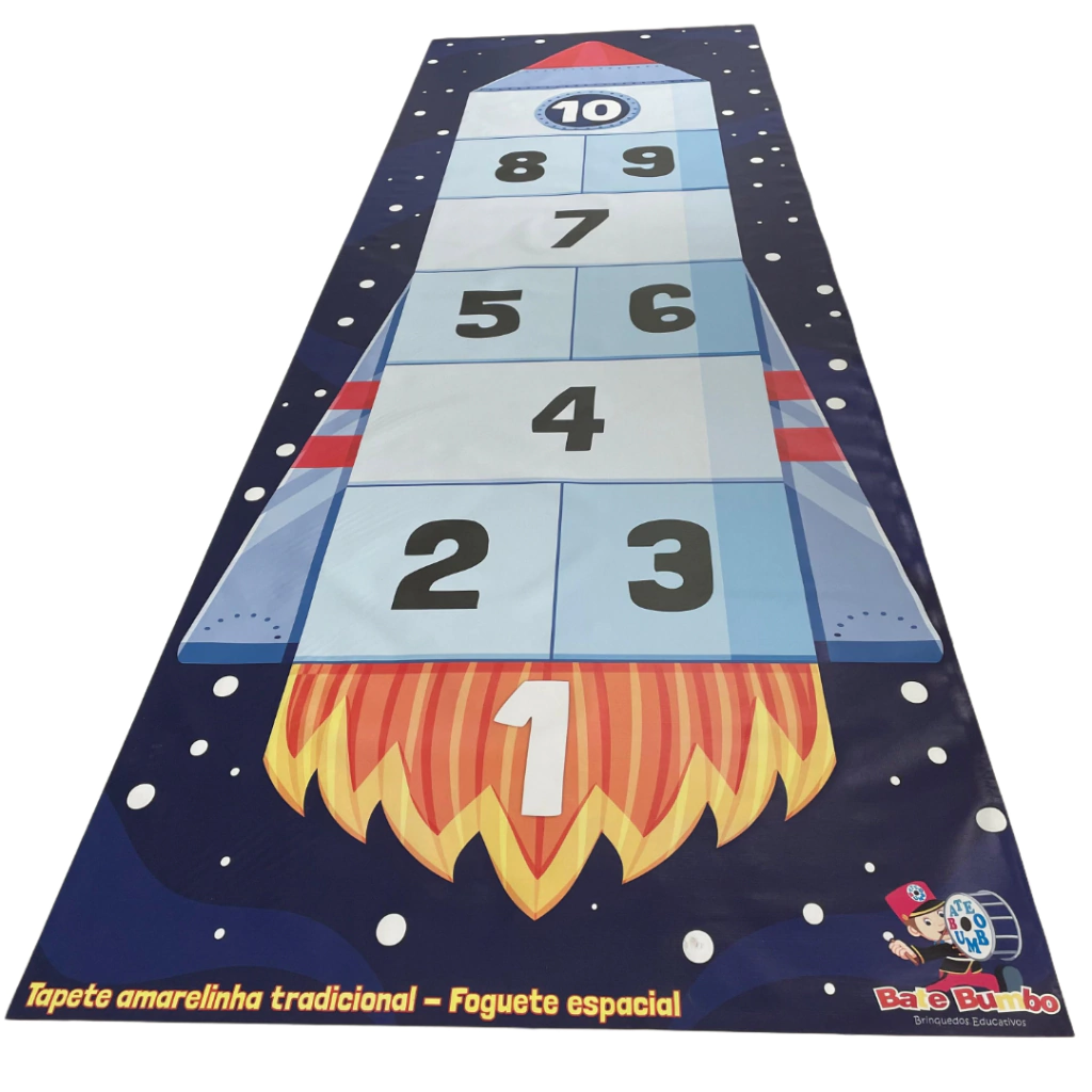 Transforme a hora da brincadeira em um verdadeiro mergulho pelo espaço! O Tapete Amarelinha Foguete Espacial une diversão, movimento e aprendizado em uma experiência única para as crianças.