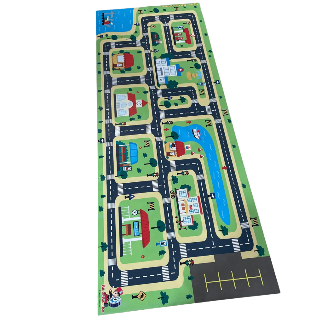 Além de proporcionar muita diversão, esse tapete estimula a coordenação motora, o faz de conta, a criatividade e a socialização entre as crianças. É ideal para brincar sozinho ou em grupo, com carrinhos e bonequinhos, criando histórias e explorando o espaço da “cidade”.