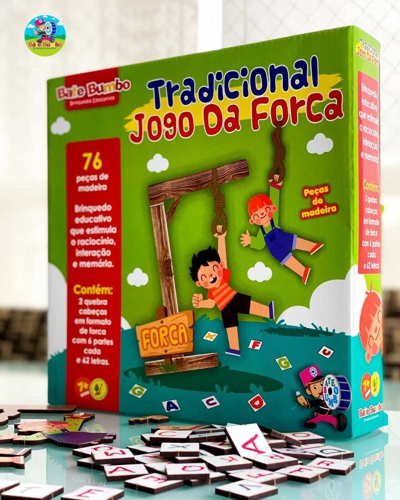 O TRADICIONAL JOGO DA FORCA é um super desafio, onde a criança acerta a letra e descobre as palavras.